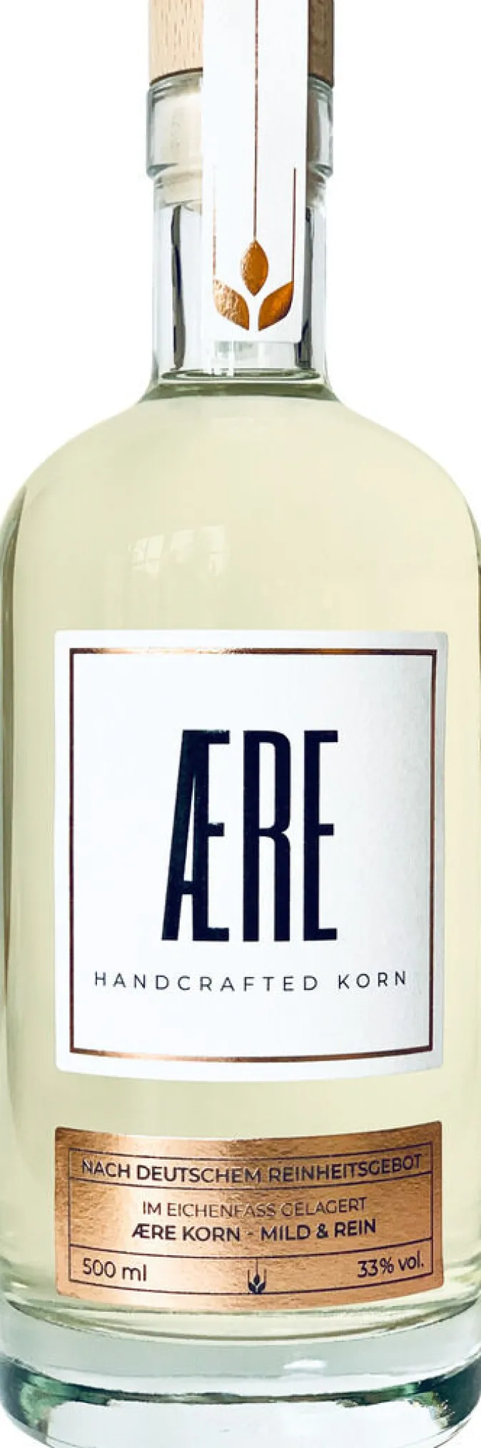»Es muss doch einen Weg geben, einen wirklich erstklassigen Korn herzustellen!« – Genau das dachten sich die beiden Gründer von ÆRE Korn aus Hamburg. Sorgfältig mehrfach destilliert und gefiltert, verleiht der ÆRE Korn jedem Glas eine einzigartige Note. Durch die zweijährige Reifung in Eichenfässern erhält er eine sanft süße Vanille-Holznote und eine wunderschöne, leichte Goldfärbung – schlicht unwiderstehlich!