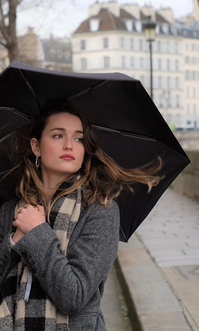 Entdecken Sie den Taschenschirm in stilvollem Schwarz – die perfekte Verbindung von Eleganz und Funktionalität. Kompakt im geschlossenen Zustand entfaltet sich dieser Schirm zu einem großzügigen Durchmesser von 84 cm, um Sie bei unerwartetem Regen stilvoll zu schützen. Das tiefe Schwarz verleiht diesem Taschenschirm eine zeitlose Note, während die hochwertige Verarbeitung für Langlebigkeit und Zuverlässigkeit steht. Gepaart mit einem eleganten Design ist dieser Schirm nicht nur ein praktisches Accessoire, sondern auch ein modisches Statement.