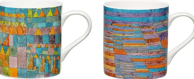 Die edlen Becher sind aus Bone-China-Porzellan gefertigt. Mit den Motiven »Haupt- und Nebenwege« und »Tempelviertel von Pert« von Paul Klee.