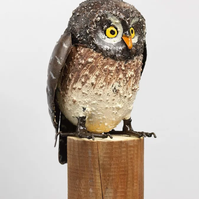 In ihrer Gesellschaft wird der Garten zu einem Raum, in dem nicht nur die Natur, sondern auch die Weisheit in Blüte steht. Liebevoll ausgearbeitete Eule aus bemaltem und lackiertem Metall.