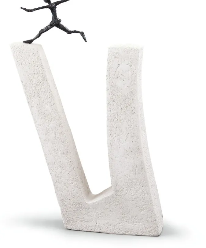 Dieses Objekt der gelernten Bildhauerin Luise Kött-Gärtner stammt aus der Serie »Business and Motivation«. Ob im Büro oder Zuhause: Diese Botschafter des Erfolges motivieren bis in die Haarspitzen! Jede Skulptur besticht durch ihre Dynamik, den tiefen Kontrast zwischen dunkel patinierter Bronze und hellem Steinguss-Sockel und wird mit einer Expertise geliefert. Kleinplastik aus feiner Bronze, von Hand patiniert und gewachst.