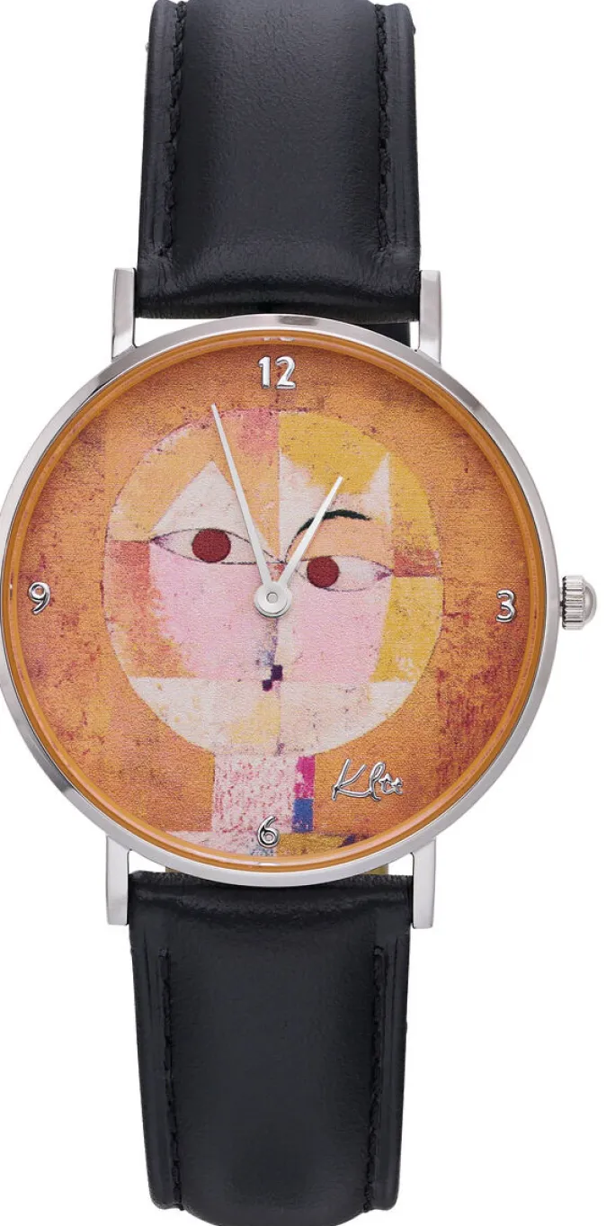 Tauchen Sie ein in die Welt der Kunst mit dieser exquisiten Künstler-Armbanduhr »Baldgreis« nach dem berühmten Gemälde von Paul Klee aus dem Jahr 1922, welches im Kunstmuseum Basel zu bewundern ist. Das edle Edelstahlgehäuse beherbergt ein präzises japanisches Quarzuhrwerk von Miyota und wird geschützt durch robustes Mineralglas. Das elegante schwarze Lederarmband verleiht nicht nur höchsten Tragekomfort, sondern auch zeitlose Eleganz. Mit einem Durchmesser von 36 mm und einer Höhe von 7 mm liegt die Uhr angenehm am Handgelenk. Die Uhr ist bis zu 3 atm wasserdicht und verfügt über die gravierte Signatur des Künstlers auf dem Gehäuseboden, wodurch sie zu einem wahren Sammlerstück wird. Jede Uhr wird mit einem Zertifikat geliefert, das ihre Authentizität bestätigt. Ein Meisterwerk der Kunst am Handgelenk – zeitlos, elegant und inspirierend.