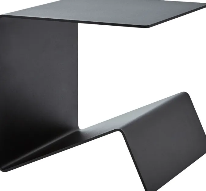 Form follows function: Ganz nach diesem Prinzip ist der Beistelltisch »HUK« konzipiert. Durch Drehen und Wenden sowie die individuelle Positionierung lässt sich der Tisch immer wieder neu entdecken – egal ob als Nachttisch, Hocker, Zeitungsständer, Couchtisch, Schreibtischaufsatz für Ordner oder als Pult. Der Tisch ist aus pulverbeschichtetem, wetterfestem Aluminium.