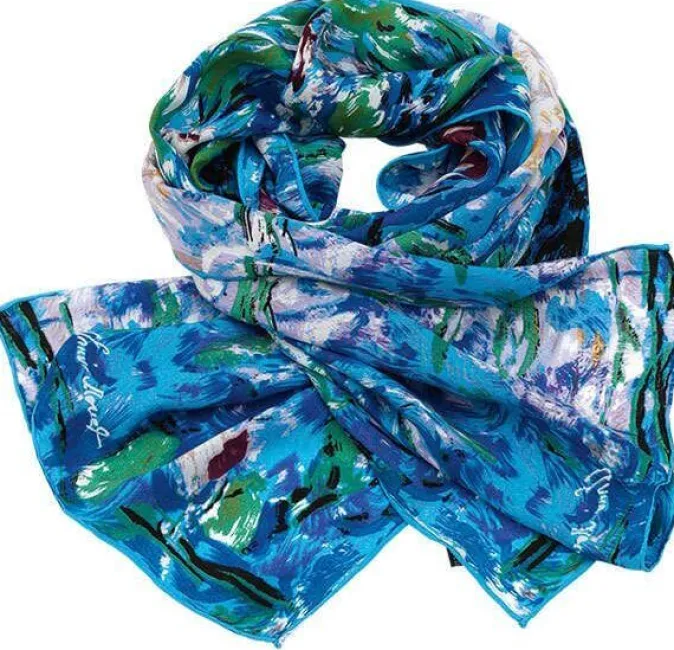 Für Liebhaber des Impressionismus ist dieses Accessoire ein Muss. Die unzähligen Farbnuancen von Monets Seerosen verleihen dem Schal aus 100% Seide seine bezaubernde Anmutung.