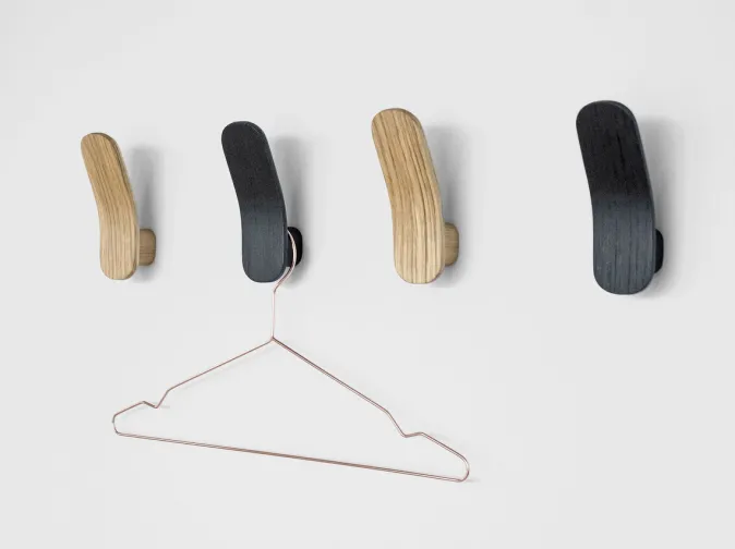 Verbeugungen sind vor allem in asiatischen Kulturen eine Geste der Höflichkeit. Das Design des Eshaku-Hakens wurde von dieser Geste inspiriert und begrüßt die Besucher des Hauses buchstäblich. Gefertigt aus Eichenholz und erhältlich in zwei verschiedenen Farbausführungen, inspirieren die Haken zu individuellen Arrangements an der Wand. Kleidung, Handtaschen, Regenschirme, Kleiderbügel, so ziemlich alles kann einfach an den Haken aufgehängt werden.