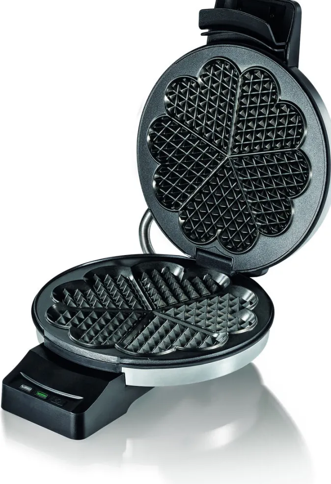 Das Waffeleisen sorgt mit einem Waffelkaliber von 19,5 cm Ø für größere, perfekt gebackene Waffeln. Das flexible Scharnier lässt die Waffeln optimal aufgehen, während der spritzwassergeschützte An-/Ausschalter und die robuste außenliegende Kabelführung für eine sichere Bedienung sorgen. Für längere Backpausen oder den gewerblichen Betrieb ist ein Abstandshalter im Lieferumfang enthalten, der versehentliches Schließen verhindert.