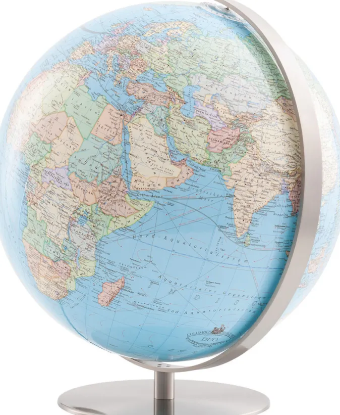 Seit über 70 Jahren steht der DUO für das Zwei-in-Einem-Prinzip: Unbeleuchtet zeigt er übersichtlich die Länder, und beleuchtet offenbart er detaillierte Topografie und dreidimensional wirkende Erhebungen. Der hochwertige Druck im 120er Feinraster-Verfahren sorgt für kristallklare Schriften und scharfe Details, einschließlich Bahn- und Schifffahrtsrouten sowie kalter und warmer Meeresströmungen. Das Ergebnis: hervorragende Lesbarkeit und Farbtreue.