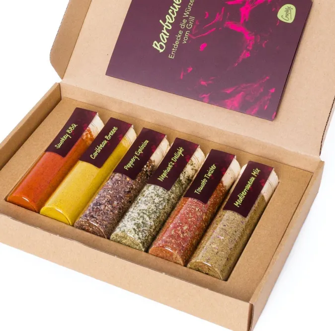 Sind Sie bereit, in der Küche und am Grill selbst zu experimentieren? Das BBQ Gewürzset lädt Sie ein, fernab von fertigen Mischungen aus dem Supermarkt, eigene kulinarische Kreationen zu entdecken und zu genießen. Dieses Set ist nicht nur ein kulinarisches Highlight, sondern auch das perfekte Geschenk für Grillfans – sei es für sich selbst, für Grillanfänger oder für echte Grillprofis.