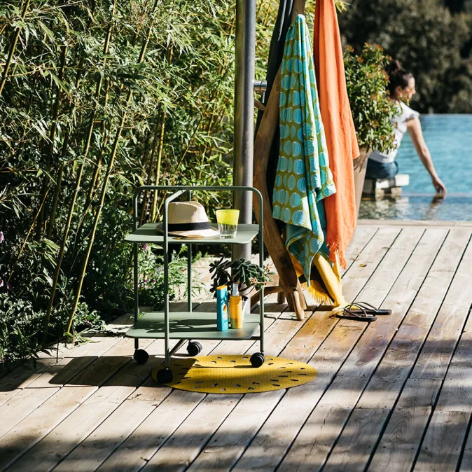 Kleiner Tisch, großer Auftritt! Der Servierwagen »Alfred« findet selbst im kleinsten Winkel Ihres Hauses ein Plätzchen. Sein asymmetrische Design und cleaner Stil, sowie die Rollen und der praktische Griff wurden von den 50er Jahren inspiriert. Der Beistelltisch bietet Platz zum Abstellen und Transportieren von Zeitungen, Tellern und Pflanzen oder fungiert als elegante Minibar – drinnen oder draußen. Alfred ist ein praktischer und aufmerksamer Butler und kann ebenso diskret im Hintergrund verschwinden, als auch seine dekorative Seite zeigen.