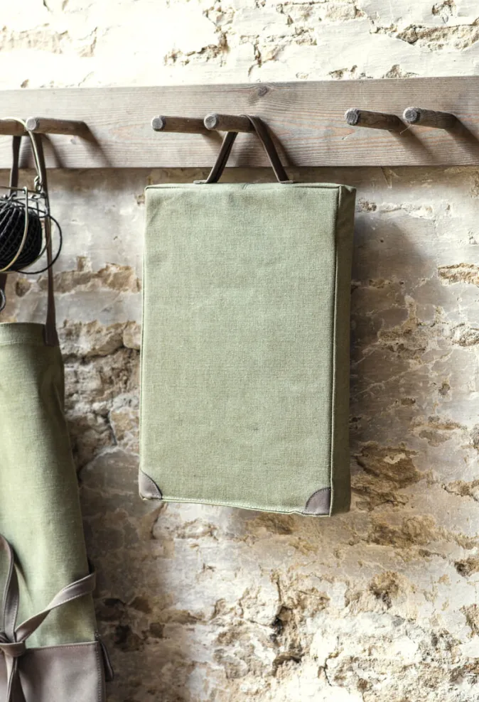 Ein fleißiger Gartenhelfer, der die Gartenpflege viel entspannter macht. Das Kniekissen mit Schaumstoffeinlage sorgt für einen guten Halt und Komfort beim Jäten und Pflanzen im Freien. Es wird mit passendem Griff aus Kunstleder geliefert, um es im Schuppen oder in der Garage aufhängen zu können. Es wird empfohlen das Kniekissen drinnen zu lagern. Die Einfassung und Rückenlehne des Kniekissens bestehen ebenfalls aus Kunstleder in einem zarten Braun.