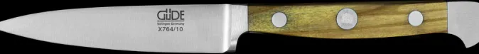 Alle Klingen der GÜDE Messer sind aus einem einzigen Stück Chrom-Vanadium-Molybdän-Stahl geschmiedet, scharf, sehr robust und rostfrei. Auch die Form der Messer ist bis ins kleinste Detail durchdacht und von Funktion und perfekter Handhabung geprägt. Sie liegen griffig und bequem in der Hand, lassen sich sicher führen und ermöglichen präzises, müheloses Arbeiten. Doch nicht nur in ihrer Funktionalität ist die Gestaltung außergewöhnlich, auch visuell lassen die Produkte durch ihre formvollendete Eleganz keine Wünsche offen.