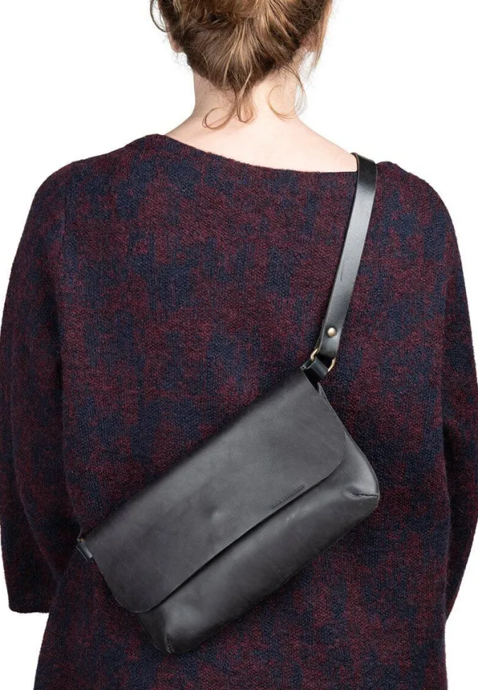 Die aus edlem, braunschwarzem Leder gefertigte Handtasche überzeugt durch ihr schnörkelloses Design. Sie ist schlank und praktisch. Nah am Körper, als Crossbody oder auch als klassische Handtasche zu tragen. Die Überschlagtasche ist mit einem Magnet verschlossen. Auf der Rückseite befindet sich eine großzügige Reißverschlusstasche. Gefertigt aus Pferdeleder in Hack Lederware Werkstatt in Köln. Ein schlichter und eleganter Begleiter für jede Alltagssituation.