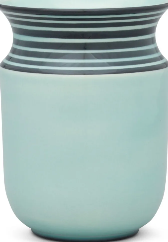 Werner Burri gilt als spielerischer Vertreter der Bauhauskeramik. Für die Mithilfe am Aufbau der Hedwig Bollhagen Werkstätten erhielt er eine eigene »Burri Kollektion«, deren Formen noch heute erhalten sind. Zu dieser Kollektion gehörte auch die W46B. Sie zeichnet sich durch die besondere Struktur der Keramik aus. Zunächst roh mit Engobe akzentuiert, erhält die Keramik nach dem Auftragen farbig transparenter Glasur und einem zweiten Brand eine ganz besondere Tiefe. Die ursprünglich schwarz engobierten Flächen, nehmen dadurch den tiefsten Farbton in der Scala der Glasur an und bilden Charakter und Persönlichkeit eines jeden Einzelstücks.