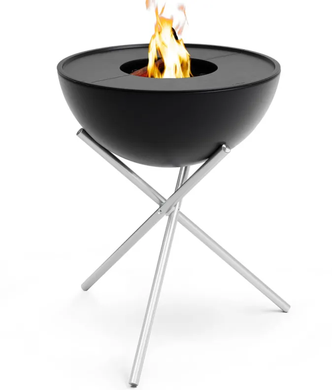 Es ist Zeit für lange Nächte und gemütliche Stunden! Mit dem »BOWL« Plancha-Grillset hoch ist leckeres Grillen und gemütliches Sitzen am Lagerfeuer kein Problem. Die Feuerschale mit stabilem Drahtfuß ist perfekt geeignet für eine Stehparty, entspannte Abende auf der Terrasse oder im Garten. Die simple Form einer schwarzen Halbkugel der Feuerschale fasziniert durch seine vielseitige Einsetzbarkeit: Waagerecht perfekt zum Grillen geeignet oder geneigt, um Windschutz zu bieten und die Wärme des Feuers in eine Richtung zu lenken. In neutraler Stellung wird die »BOWL« dank Gussplatte zur idealen Koch- und Grillstelle. Die herausnehmbare Brennschale, im Inneren der Halbkugel, schützt den Untergrund vor zu viel Hitze, ermöglicht eine ideale Sauerstoffversorgung des Feuers und lässt sich im kalten Zustand bequem reinigen. Die beiden Plancha Halbringe können einzeln oder zusammen genutzt werden. So kann auf einer großzügigeren Grillfläche gegrillt werden. Eine Planchahälfte kann ebenfalls in Kombination mit einer Grillrosthälfte, die im Shop erhältlich ist, verwendet werden. Das Kochen auf der Gusseisenplatte ist in einigen Kulturkreisen eine jahrtausendalte Tradition. Auf dem Plancha sind der Kreativität beim Kochen keine Grenzen gesetzt – unzählige Varianten sind denkbar! Die Antihaftbeschichtung ermöglicht ein fettarmes Braten und Kochen. Der Außenrand sorgt dafür, dass Fett oder Grillgut nicht herabfallen. Das Set besteht aus der »BOWL 57« Feuerschale, »BOWL 57« Ascheschale, »BOWL 57« Dreibein 2x »BOWL 57« Plancha