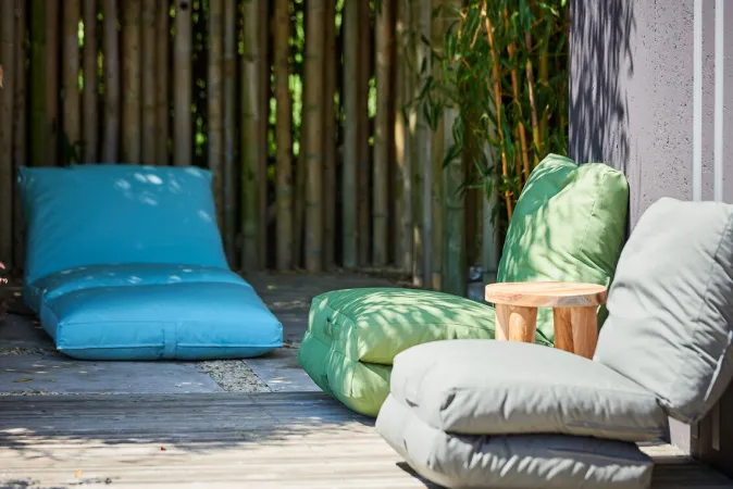 - Füllung: Polystyrol, Polyether Flockenfüllung