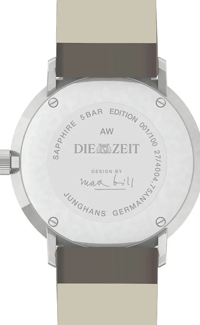 1961 entwarf Max Bill, vielseitiger Künstler mit Schwerpunkten in bildender und angewandter Kunst, eine legendäre Armbanduhrenlinie für die Uhrenfabrik Junghans – bis heute ein Unternehmen mit internationalem Renommée. Exklusiv geschaffen zum 20. Geburtstag des ZEIT Shops erscheint nun ein neues Editionsmodell von Junghans, welches eine gelungene und zeitgemäße Adaption des Originalentwurfs zeigt. Die »Kleine Automatic« (Ø 34 mm), limitiert auf 100 Exemplare, erscheint in einer einmaligen Ausführung mit einem Gehäuse in mattem Edelstahl bzw. Titan und einem mattweißen Zifferblatt. Die traditionelle Handwerkskunst der renommierten Uhrenfabrik Junghans garantiert Zeitmesser, die höchsten Ansprüchen genügen. Beidseitig entspiegelt garantiert das gewölbte Saphirglas beste Ablesbarkeit und das vegetabil gegerbte Lederband mit Amaretta Innenseite und Dornschließe aus Edelstahl zeichnet sich durch besonders hohen und langlebigen Tragekomfort aus.