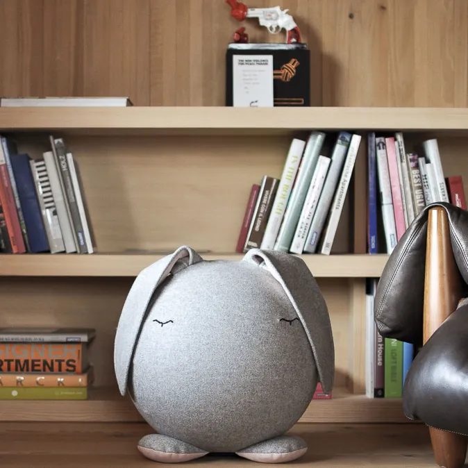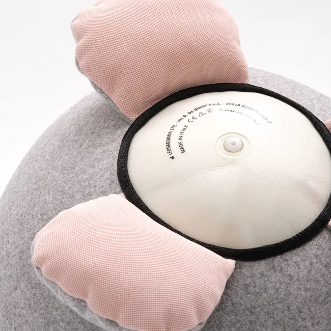 Dank seiner drei Pfoten (besser gesagt, der zwei Pfoten und dem Schwänzchen) rollt der kleine Freund auch in Tobe-Pausen nicht weg. Geduldig bleibt er aufrecht, um stets ein gemütliches Plätzchen zu bieten.
