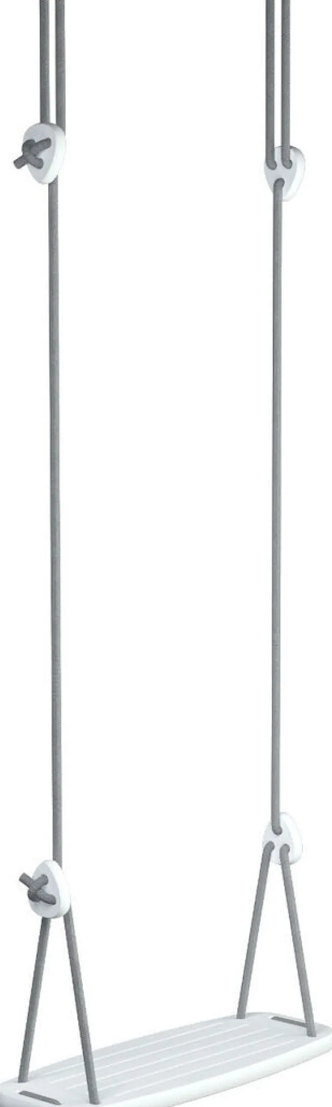 - Lieferumfang: Schaukelsitz (geöltes Eichenholz oder weiß lackiertes Birkenholz), 2 schwarze oder graue Seile (reißfestes Kunststoffgewebe), 4 Verbindungsstücke, 2 Schaukelgelenke, Montageanleitung