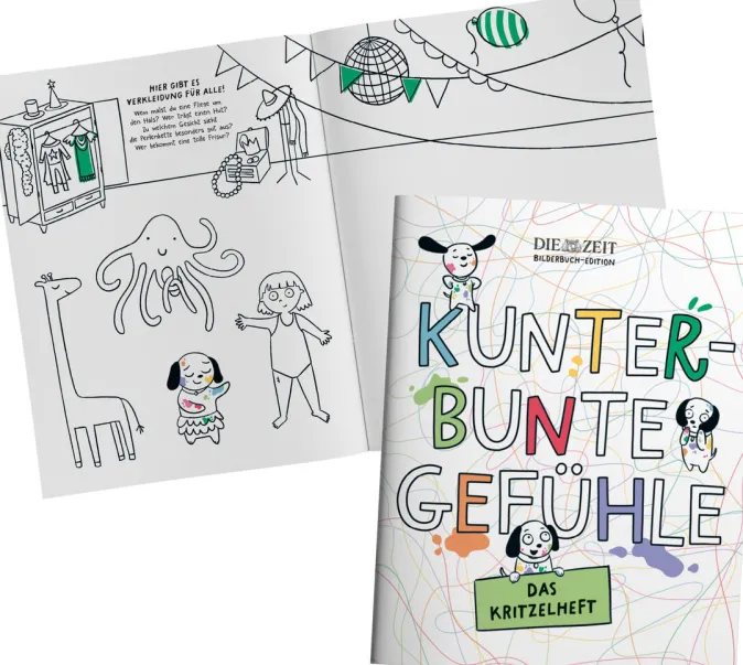 Zu den Büchern gibt es ein eigens für die Edition entworfenes Kritzel- und Malheft mit vielen Ideen, in dem die Kinder zu jedem der Gefühle und Bücher malen und kreativ werden können. Welche Farbe passt zum Glücksgefühl? Wie hoch steigen die Flammen des Wutfeuers? Und welche Blumen blühen im Gefühlsblumenstrauß?
