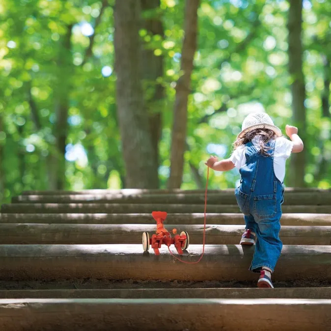 Das handgefertigte Ziehtier aus massivem Holz ist robust und eignet sich ideal für Kinder ab einem Jahr. Die leuchtend rot-orange Lackierung besteht aus speichelfester, lösungsmittelfreier Farbe auf Wasserbasis.