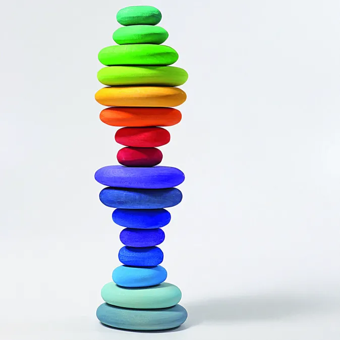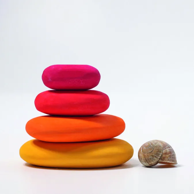 Diese Handschmeichler sind ein kniffliges Balance Spiel beim Stapeln und Bauen. Oder sie bereichern kleine Welten: die Steine können in einem Fluss liegen (Seidentuch), eine Höhle bestücken in einem Wald oder bilden ein steiniges Gelände.