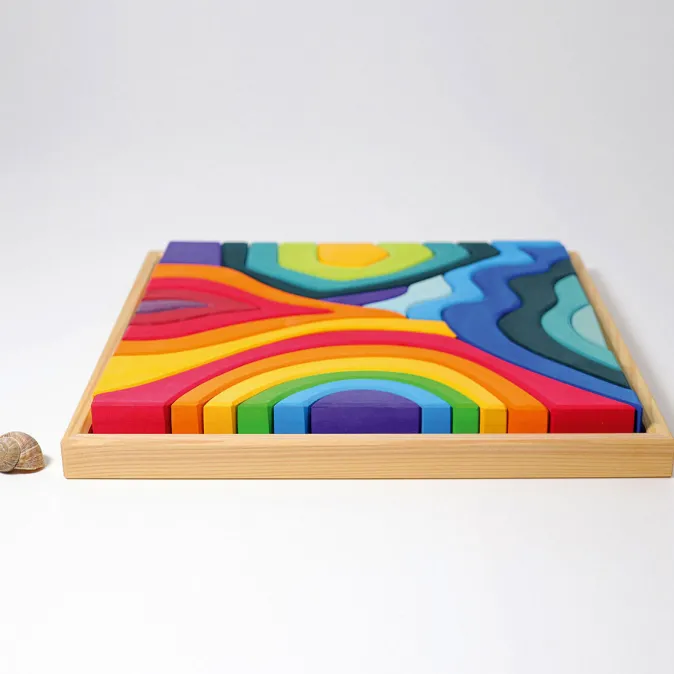 Der Vier Elemente Baukasten lädt schon die Kleinsten ein, Bauwerke und Landschaften entstehen zu lassen. Die organische Formenvielfalt regt die Fantasie an. Große und kleine Baumeister haben ihren Spaß an der Farbenvielfalt und den vielseitigen Gestaltungsmöglichkeiten. Aufgrund der schonenden Farb-Lasur, die den Bauelementen eine etwas griffigere Oberfläche verleiht, halten die Brücken und Bauwerke besser aufeinander. Größenverhältnisse und räumliches Denken können so ganz nebenbei vermittelt und begreifbar gemacht werden. Die Bausets ergänzen sich gegenseitig durch die verschiedenen Bauelementformen und ermöglichen den Kindern so ein vielseitiges und fantasiereiches Spiel!