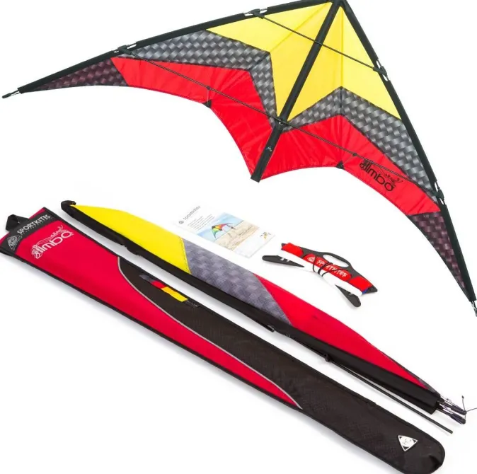 - Material: Segel aus rot-gelbem Ripstop-Polyester, Stäbe aus Fiberglas
