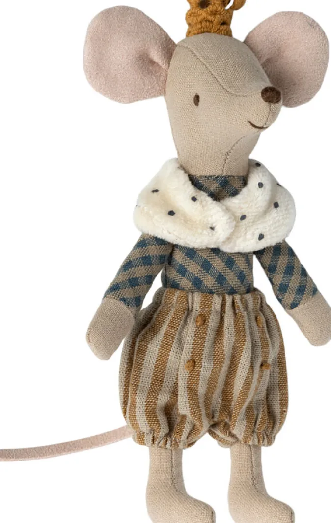 Diese bezaubernde Prinzenmaus ist bereit für königliche Abenteuer! Gekleidet in seine feinsten Gewänder mit liebevollen Details und einer glänzenden goldenen Krone, ist er ein echter Hingucker. Ein eleganter Begleiter, der Fantasie und Spielspaß ins Kinderzimmer bringt.