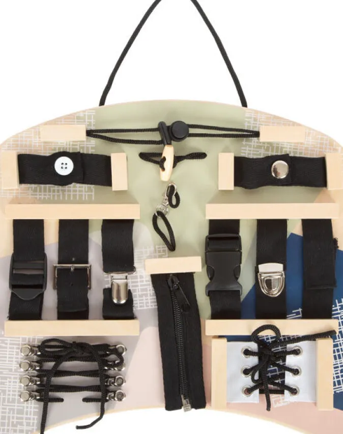 Das Small Foot Motorikbrett bietet 14 verschiedene Verschlussmöglichkeiten aus Holz, um die feinmotorischen Fähigkeiten von Kleinkindern ab 3 Jahren spielerisch zu fördern.