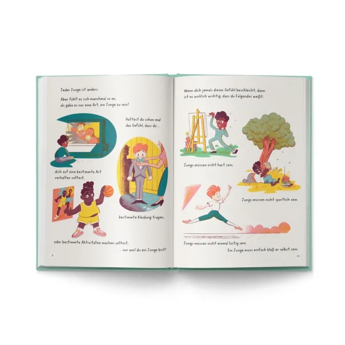 Was ist ein echter Junge? Ist er wild, tapfer und lustig? Oder zeichnet er schöne Bilder und liebt es, sich um andere zu kümmern? Egal, was ein Kind mag oder kann: Jungs sollten niemals das Gefühl haben, sich auf eine bestimmte Art benehmen oder kleiden zu müssen. Denn wir sind alle unterschiedlich und haben individuelle Stärken und Fähigkeiten!