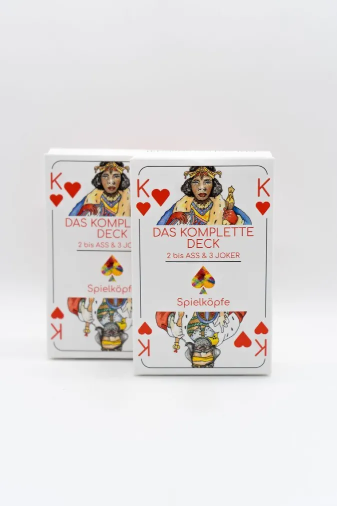 Das Rommé-Deck besteht aus zweimal 52 Karten und 6 Spielköpfen (Jokern). Es enthält die Karten 2 bis Ass in doppelter Ausführung.