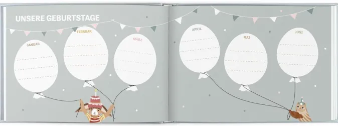 Ein Freundebuch, das deine Freunde mit Piratenhasen, im Weltall fliegenden Dachsen und verschiedenen Waldtieren in Erinnerung behält.