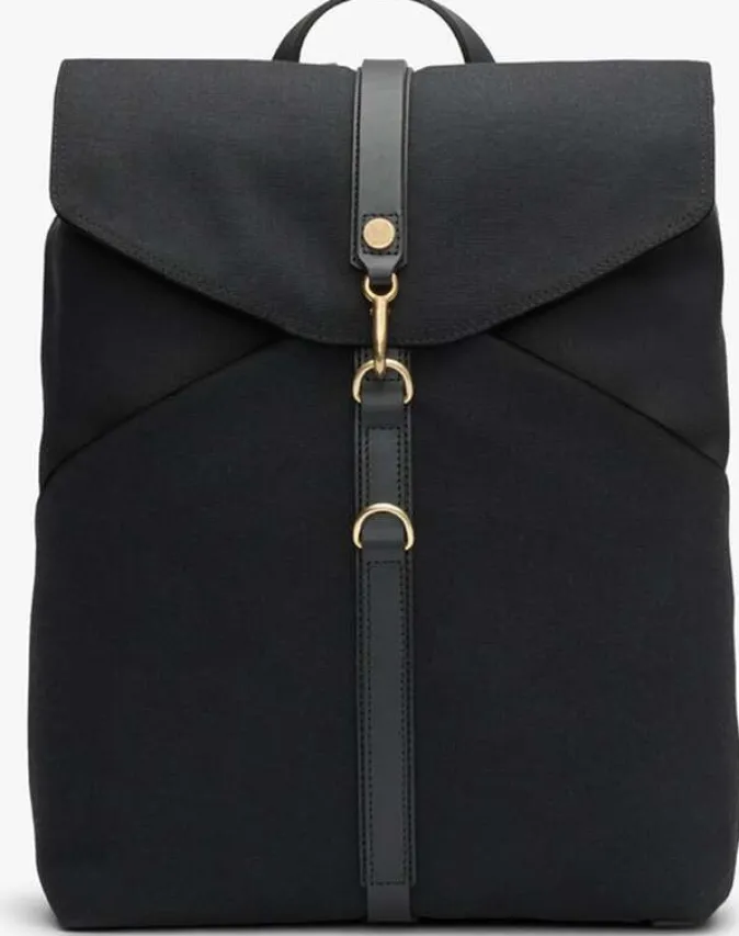 Eine Kombination aus schlanken Proportionen und Funktionalität. Dieser elegante und dynamische Begleiter erfüllt mit Stil alle Notwendigkeiten eines Tagesausflugs in die Stadt. Der Rucksack bietet viele Optionen für ein individuelles Styling – ein lässiger Look entsteht durch das Hochknöpfen aufgerollter Lederriemen und zusammenrollen der oberen Klappen. Durch biegen der Klappe nach unten und die Befestigung der Matrosenhaken an einem der vier D-Ringe auf der Vorderseite entsteht ein traditionellerer und sauberer Look. Der Rucksack verfügt über zwei tiefe und leicht zugängliche offene Außentaschen auf der Vorderseite und ein Außenfach mit Reißverschluss auf der Rückseite. Zeitschriften, ein iPad oder einen 11-Zoll-Laptop können hier ohne Probleme verstaut werden. Die Innenseite verfügt über ein gepolstertes Laptopfach auf der Rückseite und eine Ledertasche mit Reißverschluss auf der Vorderseite mit zwei offenen Einschubtaschen darunter. Wahlweise in den Farben Navy und Schwarz.
