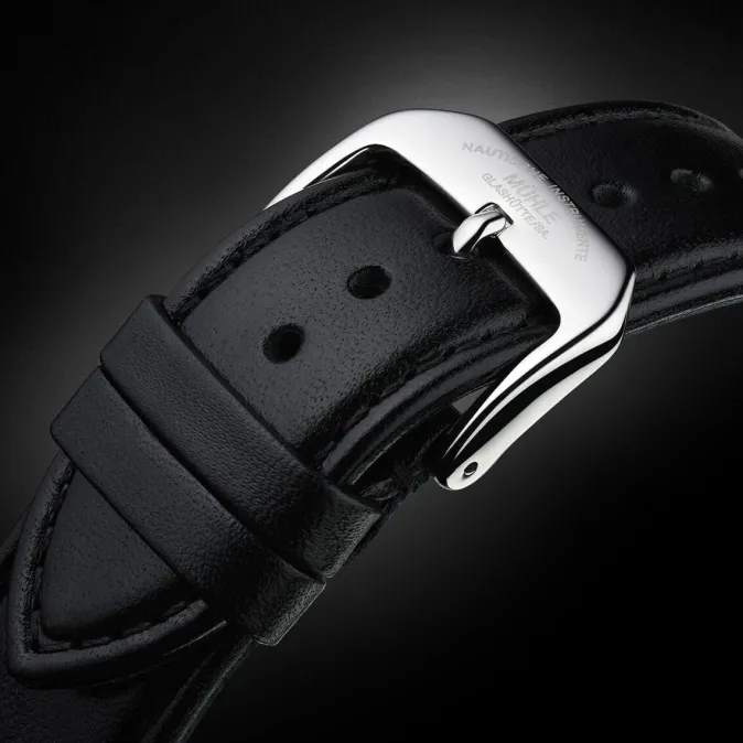 Im Februar 1946 erschien die erste Ausgabe der Wochenzeitung DIE ZEIT. Mit dem Anspruch und dem Mut, ungeschminkt die Wahrheit zu sagen, tritt die Redaktion vor 75 Jahren an. Diesem Grundsatz ist die ZEIT bis heute treu geblieben – und hat sich so zu einer Institution unter den deutschen Tages- und Wochenzeitungen entwickelt. Zum 75-jährigen Jubiläum der ZEIT fertigt Nautische Instrumente Mühle-Glashütte eine auf 100 Exemplare limitierte Sonderedition der »Teutonia III«. Dem Anlass entsprechend besitzt die Sonderedition ein festlich-elegantes Design. Die besten Beispiele dafür sind nicht nur die kannelierte Lünette, sondern vor allem auch das besonders edel gestaltete Zifferblatt. Mit seiner Eisenbahnminuterie, dem sogenannten »Chemin de fer«, und den schlanken Stundenindizes strahlt es insgesamt eine vornehme Zurückhaltung aus. Über dem weißen Zifferblatt ziehen gebläute Zeiger für Stunde, Minute und zentrale Sekunde ihre Bahnen. Für die Sonderedition für die ZEIT wurde die »Teutonia III Automatik« exklusiv mit schlanken lancette-förmigen Zeigern ausgestattet.