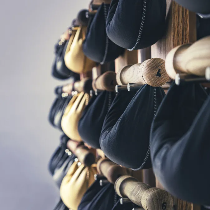 Alle Swing Hanteln werden von Hand genäht und sind mit einem Eisengranulat befüllt, welches die Unwucht in der Bewegung unterstützt, da es sich im Ledersack verlagern kann. Nach dem Workout können Sie Ihre acht Swing Hanteln aus handgenähtem Echtleder am Swing Turm platzsparend und optisch ansprechend verstauen.