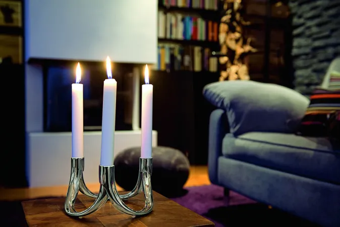 Diese dynamischen Kerzenhalter mit ihrer eleganten Form sind eine Bereicherung für jede Standoberfläche. Als grazile Deko auf dem Wohnzimmertisch sorgen sie in Kombination mit Kerzenschein für ein gemütliches Ambiente und tragen zur absoluten Wohlfühlstimmung bei. Durch das anpassungsfähige magnetische Anordnungssystem können mehrere Elemente zusammengefügt und so zu einem größeren Kerzenhalter kombiniert werden, welcher auch einen Esstisch großflächiger stimmig beleuchten kann.