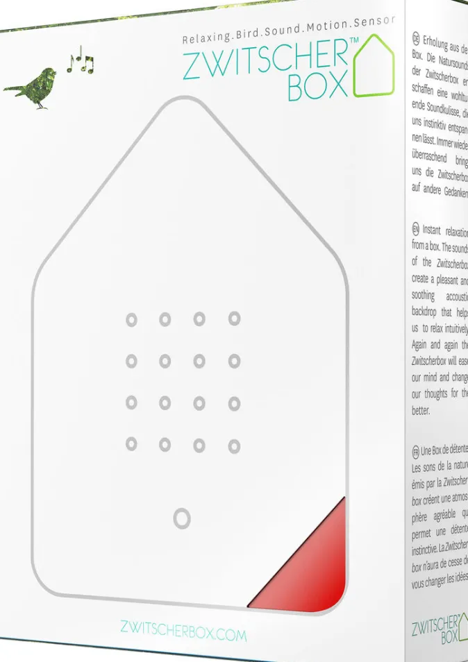 Holen Sie sich ein Vogelkonzert nach Hause! Der Stress im Alltag holt uns oft ein. Diese Zwitscherbox schenkt ihnen mit Vogelgezwitscher Momente der Ruhe und Entspannung. Im Vorbeigehen wird durch einen Bewegungsmelder ein 2 Minuten langer Vogelgesang ausgelöst. Die Zwitscherbox vermittelt ein Gefühl von Unbeschwertheit. Sie erinnert uns täglich daran auch mal abzuschalten, durchzuatmen und Energie zu tanken.