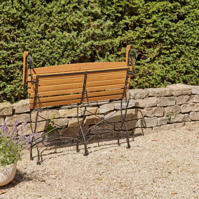 Das FSC®-zertifizierte Robinienholz ist besonders hart und robust und besticht mit seiner schönen Maserung, die der Holzbank einen ganz eigenen Charakter verleiht. Mit seinem robusten Stahlunterbau bietet die Gartenbank anhaltende Stabilität und zeigt Beständigkeit gegenüber den Elementen.