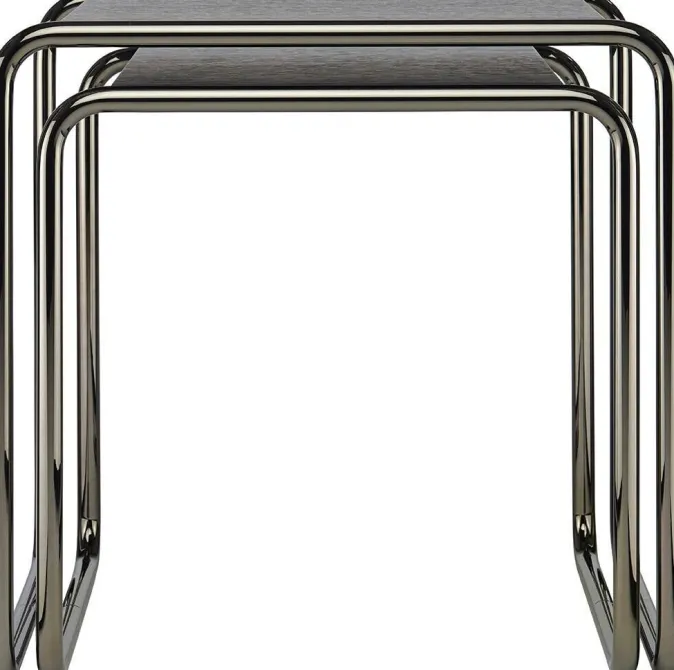 Anlässlich des 100-jährigen Bauhaus-Jubiläums veröffentlicht die Traditionsmanufaktur Thonet exklusiv für DIE ZEIT die Sonderedition »B9a/b« in einmaliger Farbgebung. Rauchglanz-verchromtes Stahlrohr und eine Ablagefläche in offenporig schwarz gebeiztem Eichenholz verleihen den auf nur 100 Exemplare limitierten Satztischen ein äußerst edles Erscheinungsbild. Ganz im Sinne des Bauhaus-Designs stehen die Möbel, entworfen von dem berühmten Architekten Marcel Breuer, für eine konsequent puristische Ästhetik. Ursprünglich für die Kantine des Dessauer Bauhaus-Gebäudes entworfen, überzeugen sie bis heute mit ihrer reduzierten Gestaltung und funktionalen Schlichtheit.