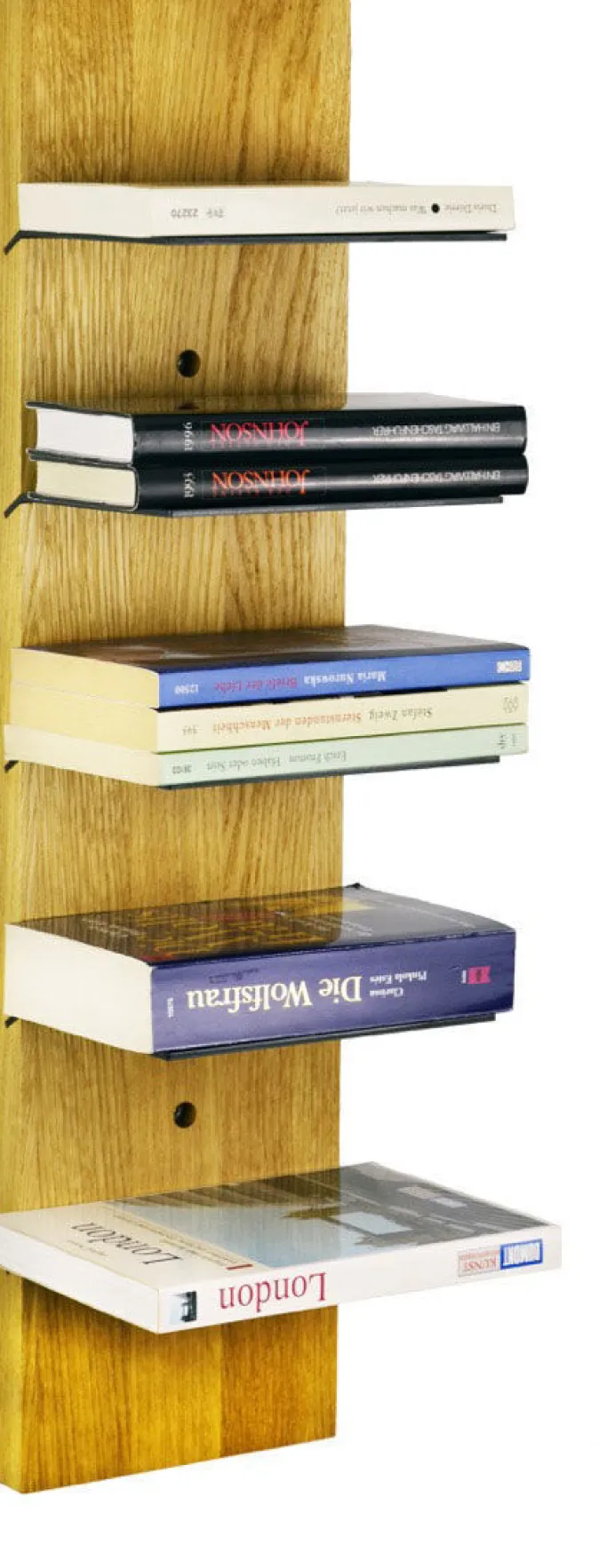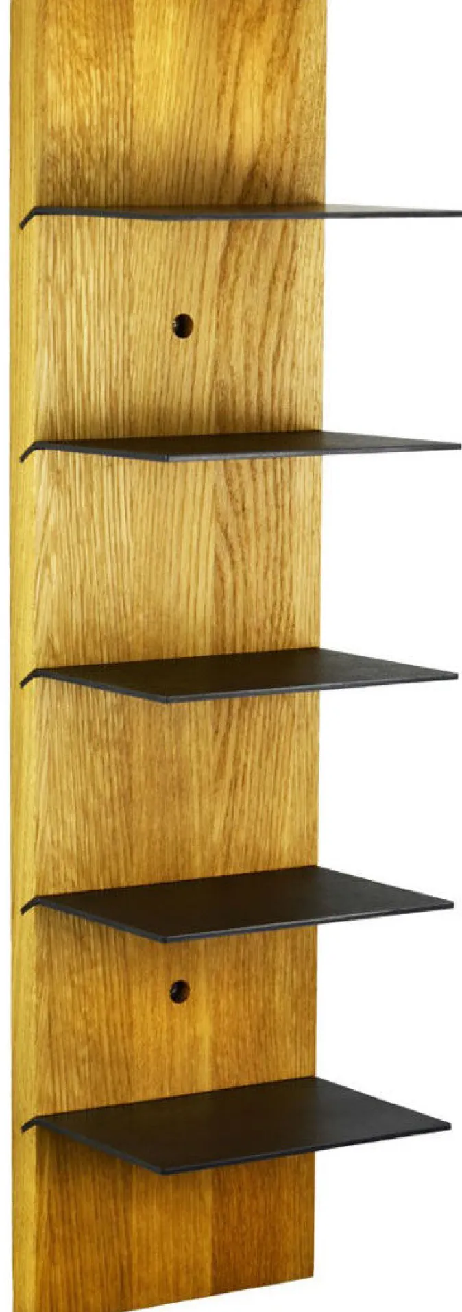 Das in Deutschland handgefertigte Wandregal »Scala« besticht durch seine Schlichtheit und Funktionalität. Die Einlegeböden sind aus geöltem Stahl und variabel einsetzbar: Sie können horizontal angebracht werden, dass Bücher und andere Accessoires optimal platziert werden, oder ebenfalls leicht schräg, sodass die Einlegeböden den optimalen Halt für Ihre Magazine oder Zeitschriften bieten.