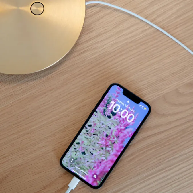 Die Lampe ist mit einem Knopf am Sockel dimmbar, und kleine Löcher im Lichtmodul erzeugen ein faszinierendes Strahlenspektakel, wenn die Lampe eingeschaltet ist. Im Sockel der Lampe verbirgt sich ein USB-Anschluss, über den Sie Ihr Handy oder Tablet aufladen können, was den multifunktionalen Aspekt des Designs von Omni betont.