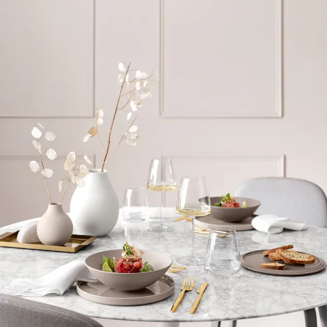 Die verschiedenen Varianten der »La Boule« sind durch ihre Funktionalität gepaart mit ikonischem Objektdesign nicht nur Eyecatcher auf Ihrem Tisch, sondern zu stylischen Kugeln zusammengesetzt auch wahre Deko-Highlights. Die vielseitig kombinierbaren Teile beeindrucken als besonderes Interior-Highlight und überzeugen dabei mit dezenter Farbgebung. »La Boule« setzt sich aus je zwei Schüsseln, flachen Schalen und Universaltellern sowie einem Servierteller zusammen, die Ihren Tisch mit subtilem Design verschönern.