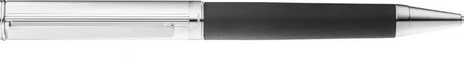 Der Kugelschreiber der Serie »Solon« aus der Manufaktur Waldmann ist aus Sterling-Silber gefertigt und in feinstem schwarzem Rindsleder gekleidet. Die Kappe wird geziert von einem guillochierten Linienmuster.
