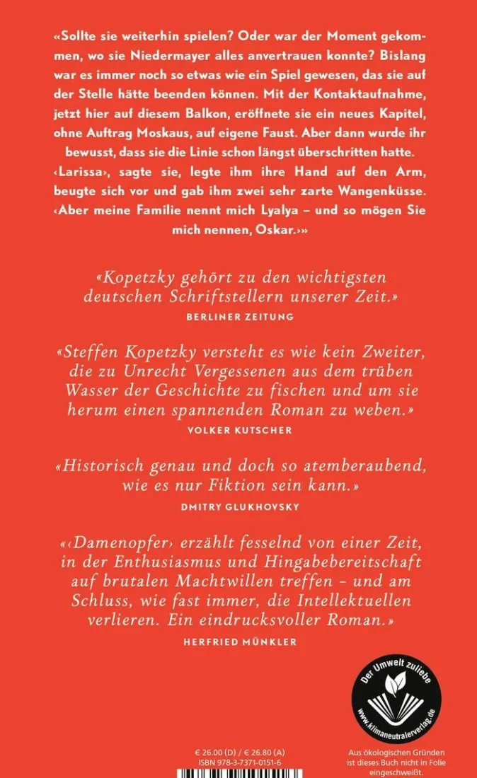 Moskau, 1923. Larissa Reissner hat als sowjetische Gesandte in Kabul strategische Pläne entdeckt, die das Britische Empire stürzen könnten. In der flirrenden Hauptstadt, wo man die Welt neu denkt und aus den Angeln heben will, sucht sie nach dem Verfasser, einem Deutschen namens Niedermayer. Denn der Sieg der Freiheit ist Reissners Lebenssinn, die junge Schriftstellerin und Revolutionärin wird als Wundertochter ihrer Epoche gefeiert. Aus illustrer Familie, lernte sie schon als Kind Lenin kennen, sie kämpfte als Politkommissarin der Wolgaflottille; Pasternak und Trotzki bewundern sie.