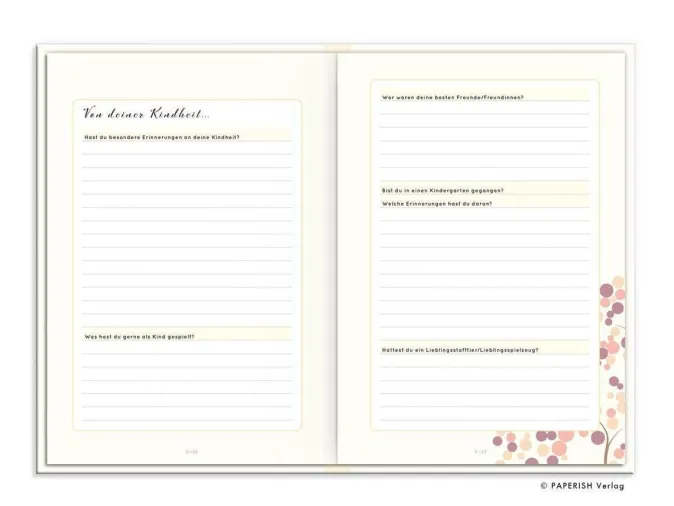Ein wundervolles Erinnerungsalbum, in dem Mütter alle wichtigen Momente und Ereignisse ihres Lebens, persönliche Erfahrungen und spannende Eindrücke auf ganz besondere Weise festhalten können. Mit der Geburt beginnend, enthält dieses einzigartige Album viele liebevolle gestaltete Seiten zum Eintragen, Einkleben und kreativsein für alle wichtigen Fragen zu Mamas Leben. Einmal ausgefüllt, ist dieses Erinnerungsbuch ein für immer verbindendes Band zwischen Mama und Kind. Damit das Album auch lange Freude bereitet, sind die Seiten besonders stabil und der Einband des Buches fest und folienkaschiert. Und für das gewisse Etwas gibt es eine wunderschöne Goldfolienprägung auf dem Cover des Buches, so kann jeder erkennen dass es sich um ein einzigartiges, persönliches Erinnerungsstück handelt.- Eine ganz besonderes, einzigartiges Erinnerungsalbum- Höchster Anspruch an Qualität und Herstellung des Buches- Hochwertige und liebevolle Gestaltung mit viel Platz für Bilder Texte und Erinnerungen- Ein ideales Geschenk für Mütter zum Geburtstag, Muttertag, zu Weihnachten oder einfach als besondere Aufmerksamkeit- stabiles Hardcoverbuch mit Fadenbindung, Kapitalband und dickem Naturpapier- tolle Goldfolienprägung als Highlight auf dem Cover- klimaneutral hergestellt- Schenken Sie Ihrer Mutter dieses außergewöhnliche Ausfüllbuch als Wertschätzung und ganz persönliches Geschenk