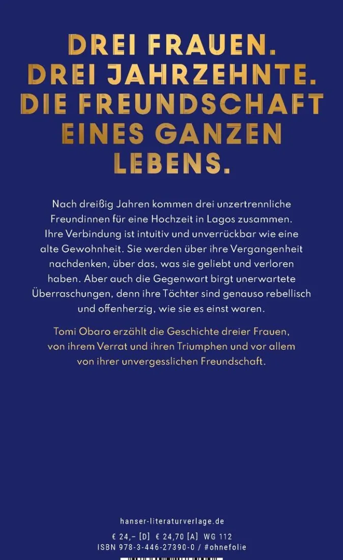 Tomi Obaro erzählt die Geschichte dreier Frauen, von ihrem Verrat und ihren Triumphen und vor allem von ihrer unvergesslichen, unverrückbaren Freundschaft.