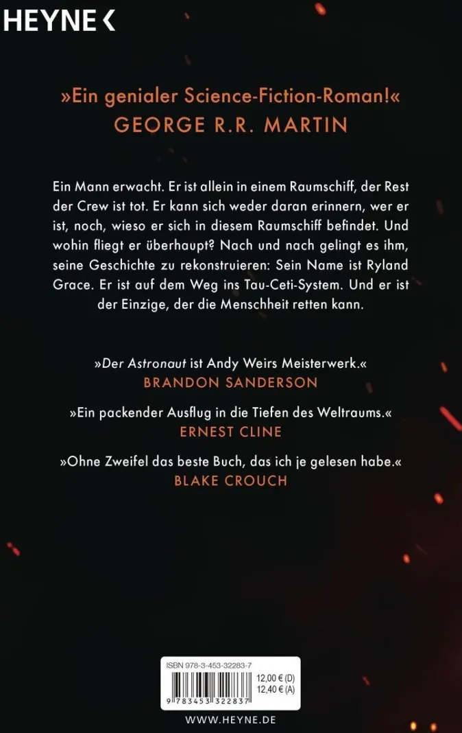 Als Ryland Grace erwacht, muss er feststellen, dass er ganz allein ist. Er ist anscheinend der einzige Überlebende einer Raumfahrtmission, Millionen Kilometer von zu Hause entfernt, auf einem Flug ins Tau-Ceti-Sternsystem. Aber was erwartet ihn dort? Und warum sind alle anderen Besatzungsmitglieder tot? Nach und nach dämmert es Grace, dass von seinem Überleben nicht nur die Mission, sondern die Zukunft der gesamten Erdbevölkerung abhängt.