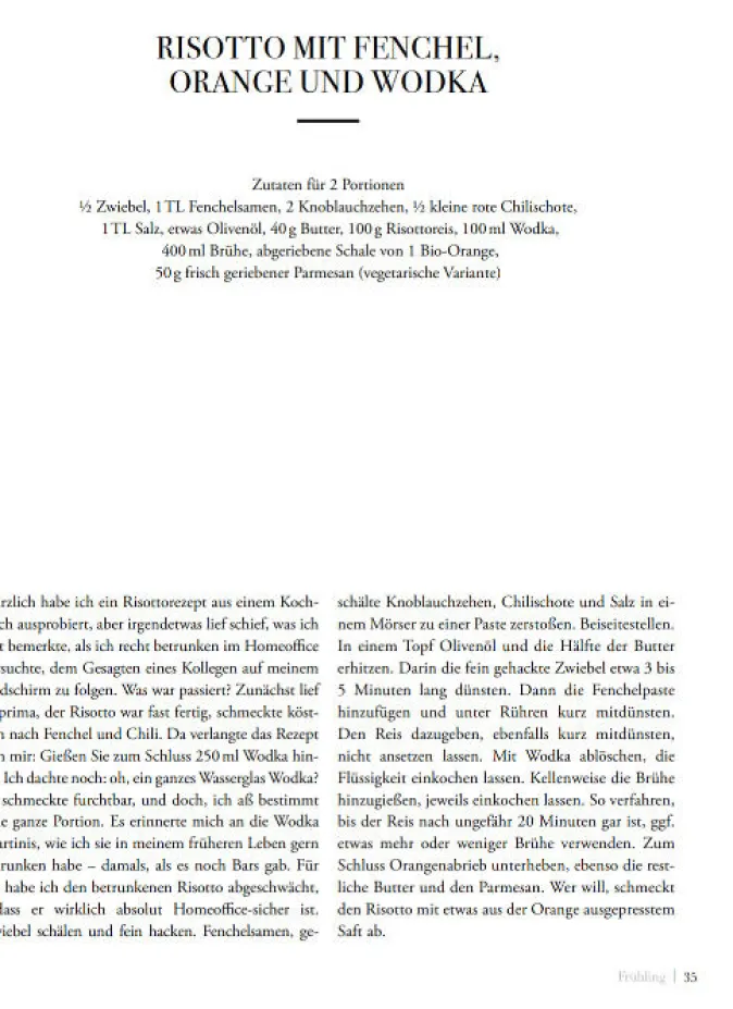 Im Frühling gibt es geschmorte Radieschen, im Sommer Zucchini – und zwar in jeder Form, als Pesto, Risotto und Gratin. Traditionelle Gemüsesorten wie Zwiebel oder Kohl lassen sich im Herbst in zeitgemäßen Gerichten wie einem Weißkohlgratin mit Maronen in Szene setzen. Und auch im Winter geben die Marktstände viel mehr her, als man denkt. So wird aus Schwarzkohl eine köstliche Lasagne – echtes Comfort-Food. Gemüse spielt dabei immer die Hauptrolle – auf dem Teller und in Elisabeth Raethers pointierten und lebendigen Texten.