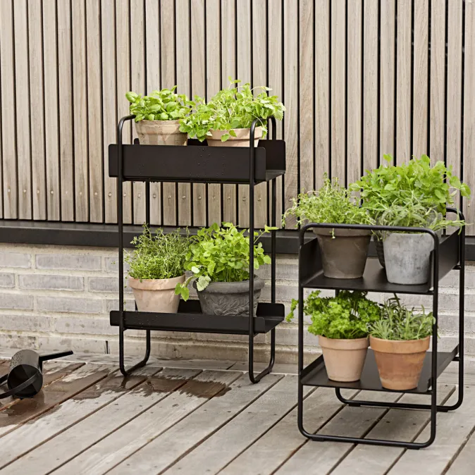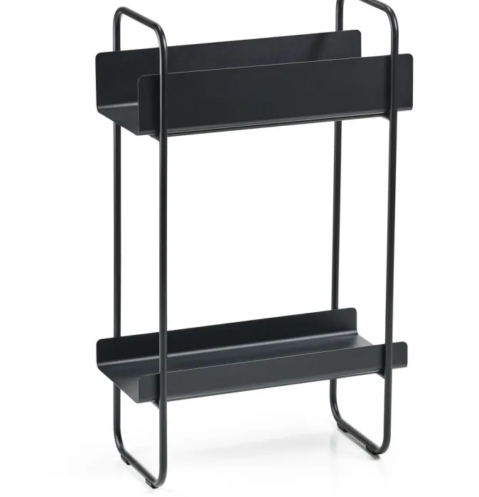 Verschönern Sie eine Ecke im Wohnzimmer, auf dem Balkon oder begrüßen Sie Gäste auf reizvolle Weise im Flur. Der schmale Konsolentisch aus pulverbeschichtetem Metall passt in die meisten Räume, auch dann, wenn die Bodenfläche knapp ist. Er wird mit zwei Ablagen geliefert, die Sie ganz nach Belieben und Bedarf platzieren können. Die eine Ablage hat eine hohe Kante für Handtücher, Mützen/Handschuhe, Hundeleinen oder was auch immer Sie benötigen. Sie eignet sich auch besonders gut als dekorativer Pflanztisch.