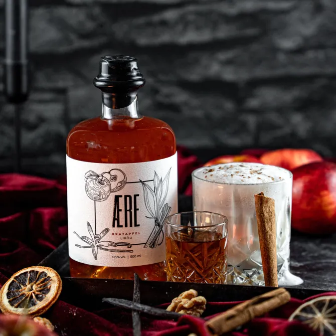 Der neue Bratapfellikör von Aere wird mit frischem Apfelsaft aus dem Alten Land & handgemachten Bratäpfeln hergestellt. Monatelang hat die Manufaktur aus Norddeutschland experimentiert, getüftelt, verkostet und immer wieder neu angefangen, um ein ganz besonderes Geschmackserlebnis zu kreieren.
